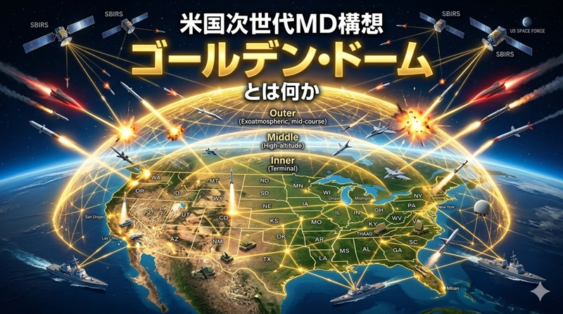 従来のMDが「点」や「線」の防御であったのに対し、ゴールデン・ドームは「面で守る防衛」へと進化します。